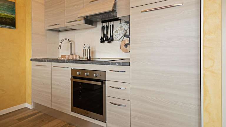 Die Ferienwohnung mit Klimaanlage umfasst 2 Schlafzimmer, ein Wohnzimmer, eine voll ausgestattete Küchenzeile mit Kühlschrank und Kaffeemaschine sowie ein Badezimmer mit Bidet und Dusche. Handtücher und Bettwäsche werden bereitgestellt.
