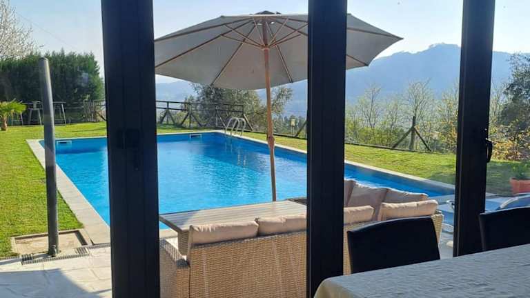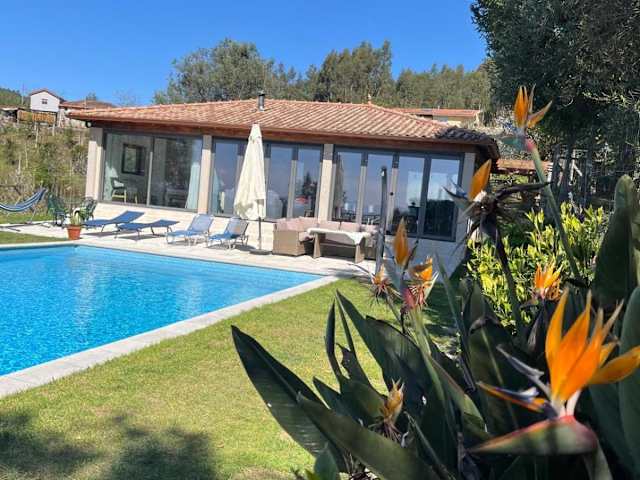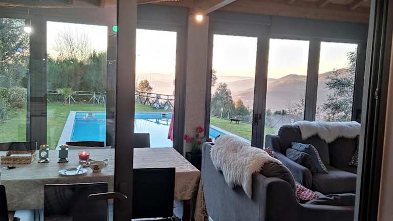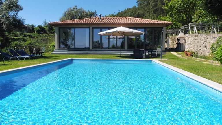 Das The Pool House in Longos ist eine charmante Unterkunft, die sich inmitten eines Weinbergs befindet und eine ideale Lage bietet, um die Städte Guimarães und Braga zu erkunden. Mit einem Salzwasser-Außenpool und einer Terrasse bietet das Ferienhaus alle Annehmlichkeiten für einen entspannten Aufenthalt. Genießen Sie den kostenlosen WLAN-Zugang und den atemberaubenden Bergblick. Das Haus verfügt über 2 Schlafzimmer, eine voll ausgestattete Küche und ein Badezimmer mit kostenfreien Pflegeprodukten. Entspannen Sie auf der Terrasse am Pool oder im Garten und nutzen Sie den Grill für ein köstliches Essen im Freien. Bei Ihrer Ankunft erwartet Sie ein Willkommenskorb und eine kostenlose Flasche Hauswein. Entdecken Sie die nahe gelegene Burg Guimarães und den Palazzo Ducale. Der Flughafen Porto ist nur 41 km entfernt.