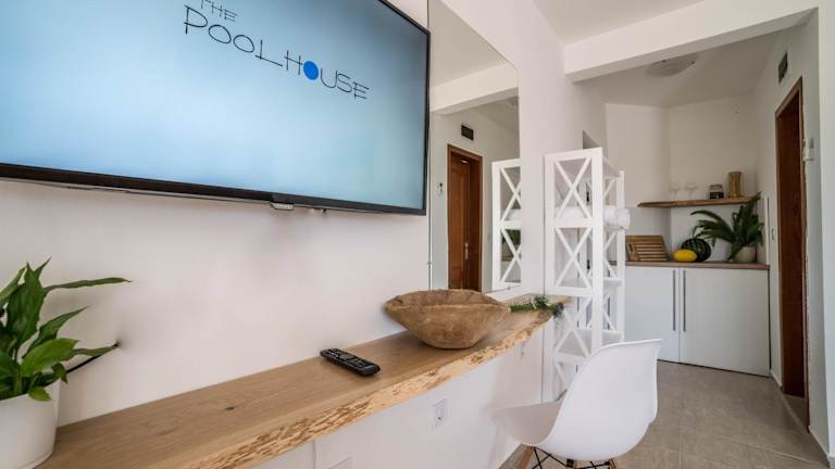 Die Unterkünfte im The Poolhouse verfügen über kostenfreies WLAN, Klimaanlage und eine voll ausgestattete Küchenzeile mit Kühlschrank und Minibar. Die Apartments bieten zudem eine Terrasse, einen Sitzbereich und einen Flachbild-Kabel-TV. Das eigene Badezimmer ist mit einer Dusche und kostenlosen Pflegeprodukten ausgestattet. Einige Unterkünfte verfügen über einen Balkon oder eine Terrasse mit Pool- oder Gartenblick.