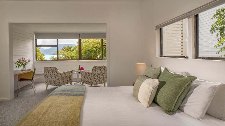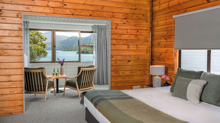 Das Hotel verfügt über 41 Zimmer, die alle mit eigenem Balkon oder Terrasse ausgestattet sind und einen herrlichen Blick auf die Marlborough Sounds bieten. Jedes Zimmer verfügt über ein eigenes Bad, Tee- und Kaffeezubereitungsmöglichkeiten und WLAN. Für zusätzlichen Komfort gibt es einen Zimmerservice und einen Schreibtisch.