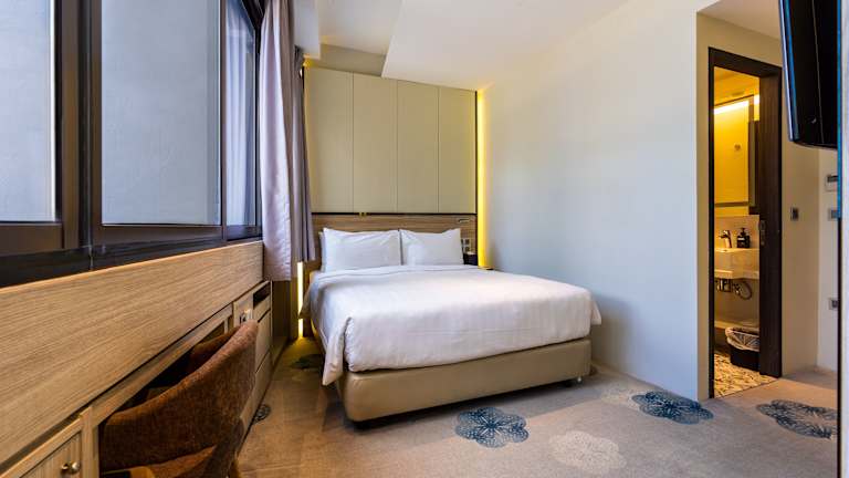 Die klimatisierten Zimmer im Quay Hotel bieten modernen Komfort und sind mit einem LCD-Kabel-TV und Bewegungssensoren für das Licht ausgestattet. Die eigenen Badezimmer verfügen über eine Regendusche, einen Haartrockner und Hausschuhe.