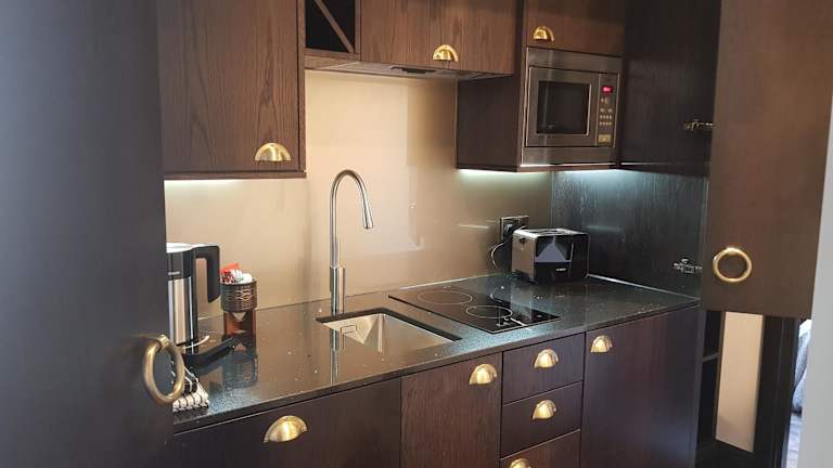 Das Apartment verfügt über ein gemütliches Schlafzimmer und eine voll ausgestattete Küche mit modernen Geräten wie einem Kühlschrank und einem Geschirrspüler. Das Badezimmer ist mit einer Dusche und kostenlosen Pflegeprodukten ausgestattet. Handtücher und Bettwäsche werden gestellt, um den Gästen den maximalen Komfort zu bieten. Kostenloses WLAN und ein Flachbild-TV sorgen für Unterhaltungsmöglichkeiten während des Aufenthalts.