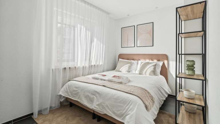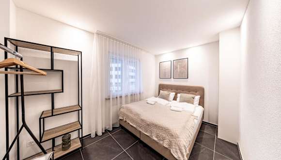 Die Ferienwohnung verfügt über 1 Schlafzimmer, eine Küche mit Kühlschrank und Geschirrspüler, einen Flachbild-TV, einen Sitzbereich und 1 Badezimmer mit Dusche. Handtücher und Bettwäsche werden bereitgestellt.