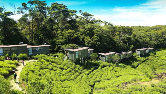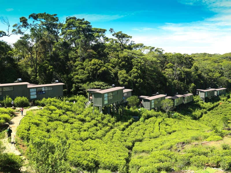 Conforming to a world renowned ecotourism concept, each Chalet is architecturally designed using 2 1/2 recycled shipping containers and is perched on stilts above the tea patch. The interior is ideally decorated with recycled bamboo paneling while the floor and private deck resemble recycled railway sleepers. Each chalet consists of a bedroom, a washroom, a living area and a private deck.
