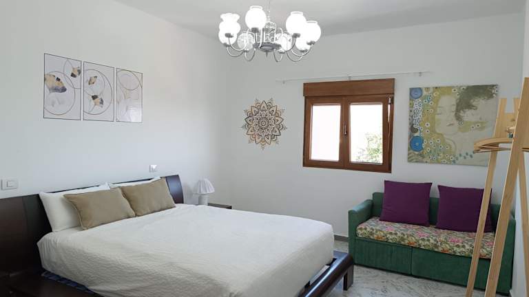 Die Ferienwohnung besteht aus zwei Schlafzimmern, einem Wohnzimmer und einer voll ausgestatteten Küche, die mit einem Kühlschrank und einer Kaffeemaschine ausgestattet ist. Ein Badezimmer mit Bidet und Haartrockner ist ebenfalls vorhanden. Handtücher und Bettwäsche werden bereitgestellt.