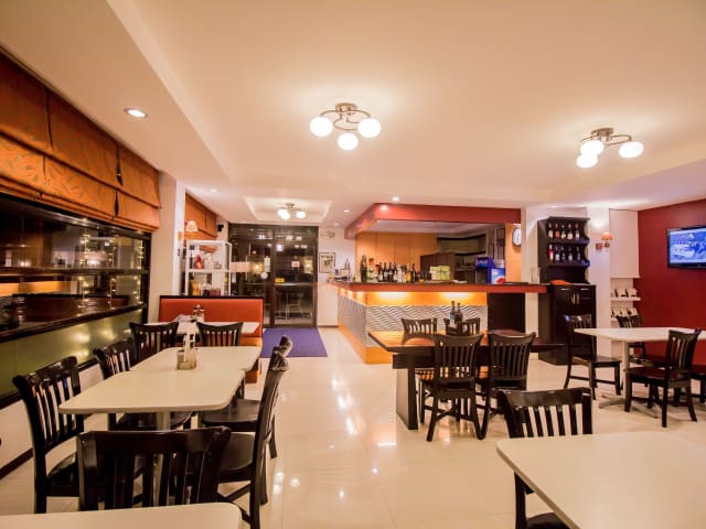 Das Hotel verfügt über ein Restaurant, in dem Sie Mittag- und Abendessen genießen können. Alternativ können Sie auch den Zimmerservice nutzen, um Mahlzeiten auf Ihrem Zimmer zu bestellen. Ein nach Wunsch zubereitetes Frühstück wird gegen Gebühr angeboten.