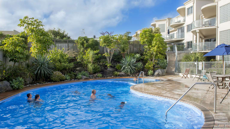 Die Unterkunft befindet sich an der Marine Parade und bietet eine beeindruckende Strandlage mit Blick auf den Ozean. Die Umgebung ist durch Nähe zu verschiedenen Freizeitmöglichkeiten gekennzeichnet, darunter die Mount Maunganui Golf Course, die sich nur 4 Fahrminuten entfernt befindet. Die Mauao-Hikingstrecken sind in 7 Minuten mit dem Auto erreichbar, während Papamoa Beach in 13 Minuten erreichbar ist. Tauranga Airport liegt ebenfalls in der Nähe der Unterkunft.