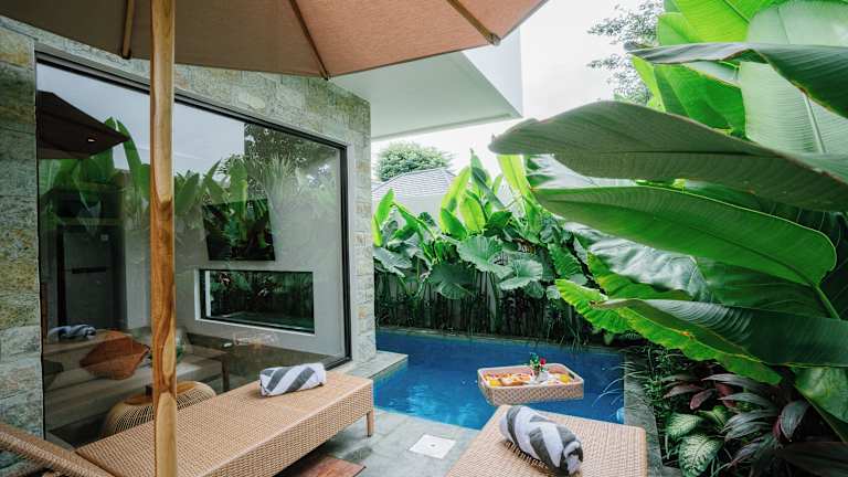 The Reef Villas Uluwatu bietet Übernachtungsmöglichkeiten mit einem Außenpool, einem Garten und einer Terrasse. Die Unterkunft verfügt über ein kostenloses WLAN und einen eigenen Pool sowie einem kostenlosen Parkplatz.