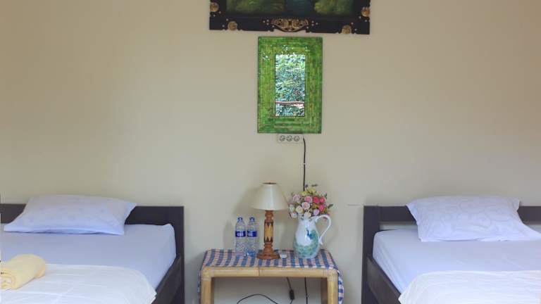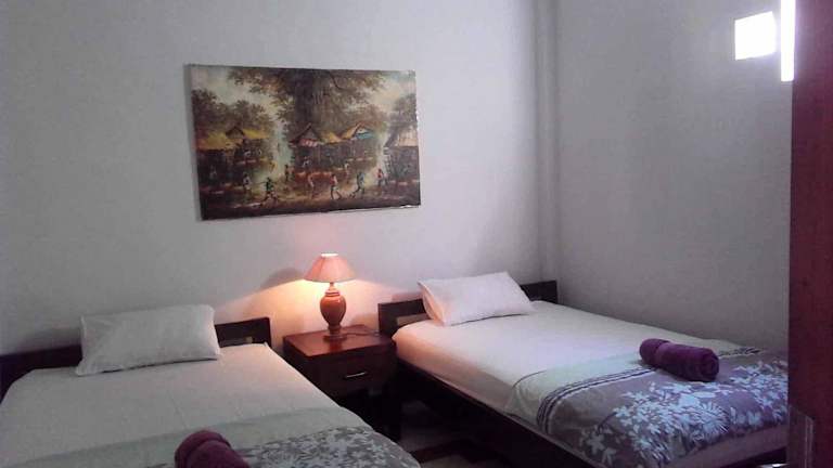 Die Zimmer im Reinhold Guesthouse Bali sind einfach, aber komfortabel. Sie sind voll klimatisiert und verfügen über einen Schreibtisch, einen Kleiderschrank und einen Sitzbereich. Die Gemeinschaftsbäder sind mit Duschen ausgestattet. Im Gemeinschaftsbereich können Sie sich in Ihrer Freizeit mit einem Computer, einem TV und einem DVD-Player entspannen. Kaffee, Tee und Wasserflaschen stehen kostenlos zur Verfügung.