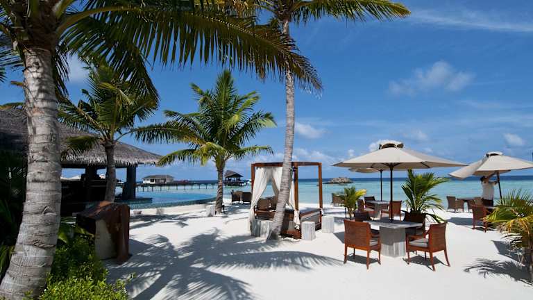 Das Hotel The Residence Maldives bietet eine Vielzahl von gastronomischen Einrichtungen, darunter das The Dining Room, das The Sunset Grill und das The Falhumaa. Genießen Sie leichte Mahlzeiten und Cocktails im Inselstil in der Beach Bar, die einen atemberaubenden Blick auf das klare blaue Wasser bietet.