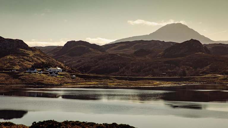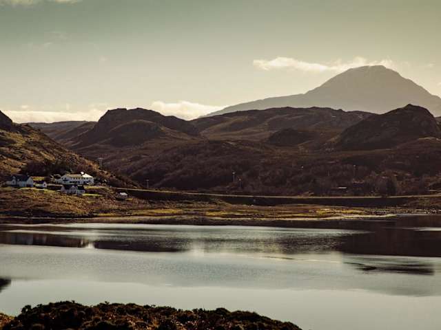Kinlochbervie, umgeben von einer malerischen Landschaft, in der Nähe von Wanderwegen.
