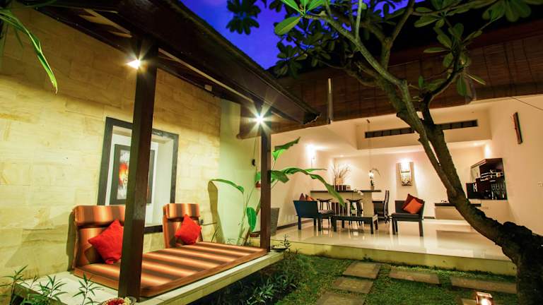 Die Unterkunft befindet sich in Kerobokan, in der Region Umalas. Diese zentrale Lage ist ideal für internationale Touristen, Hochzeitsreisende, Familien, Geschäftsreisende und Alleinreisende. Nach einer kurzen Autofahrt (ca. 15-20 Minuten) sind die Strände von Seminyak, Legian und Kuta sowie zahlreiche Freizeitmöglichkeiten wie Pubs, Clubs und Restaurants erreichbar. Der internationale Flughafen Denpasar liegt etwa 20 km entfernt und ist in ca. 25 Minuten mit dem Auto zu erreichen. Der Strand ist etwa 5 km entfernt und das Stadtzentrum befindet sich in ca. 8 km Entfernung.