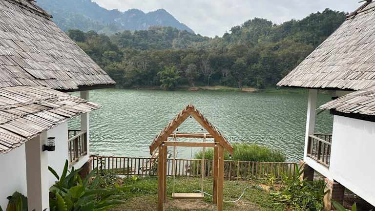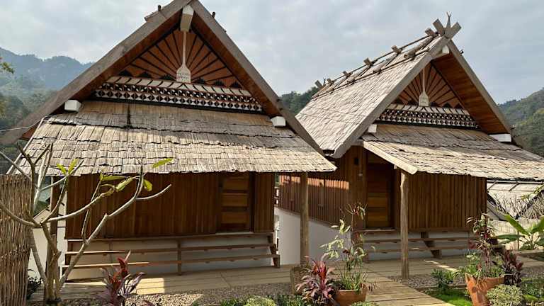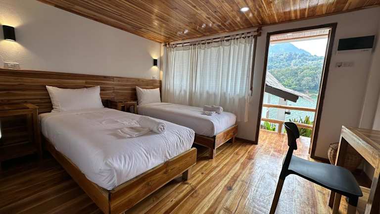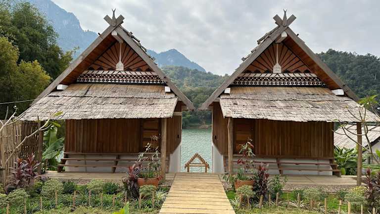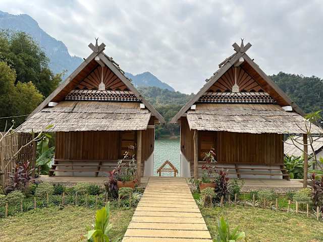 Die Unterkunft The River Huts befindet sich in Nong Khiaw, in der Nähe des Flusses und bietet einen malerischen Blick auf das Wasser.