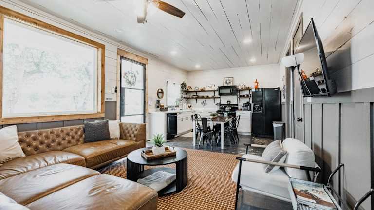 Das The Roost Farmhaus liegt in Spring Branch und bietet einen herrlichen Blick auf die umliegende Hügellandschaft. In der Nähe befinden sich der Canyon Lake, der Comal River und der Comal Park, wo Sie Wassersportaktivitäten wie Kanufahren genießen können. Das Schlitterbahn Waterpark Resort ist ebenfalls in der Nähe und bietet Spaß für die ganze Familie. Die Geschäfte von La Cantera sind ebenfalls leicht erreichbar. Der internationale Flughafen San Antonio ist nur eine kurze Fahrt entfernt.