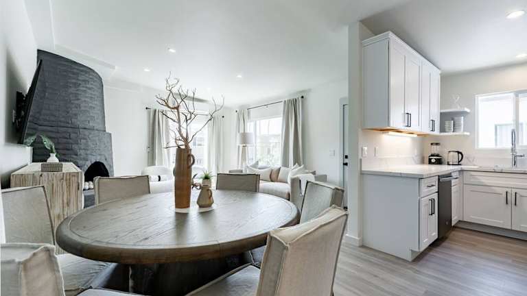 Das Ferienhaus bietet zwei separate Schlafzimmer, eine voll ausgestattete Küche, die mit Kühlschrank und Geschirrspüler ausgestattet ist, sowie zwei Badezimmer. Die Klimaanlage sorgt für zusätzlichen Komfort.