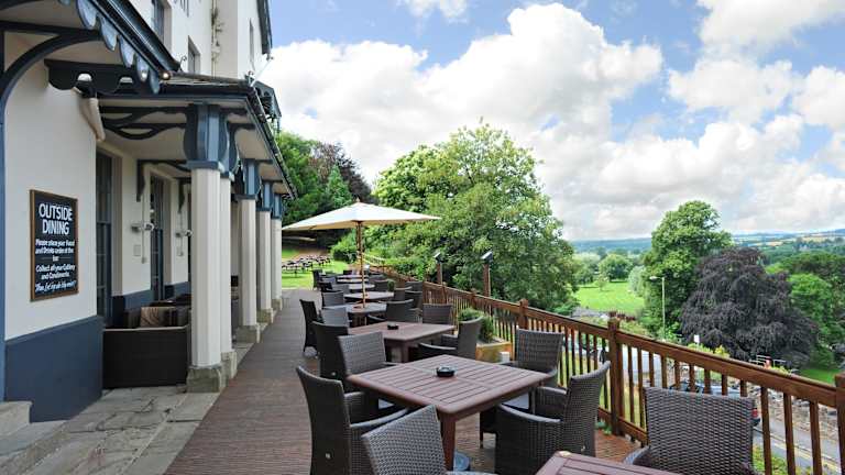 Das Royal Hotel bietet morgens ein komplettes englisches Frühstück und serviert bis 22:00 Uhr klassische Küche. Im Sommer können Sie auf der Terrasse mit Blick auf das Wye-Tal speisen und die schöne Aussicht genießen.