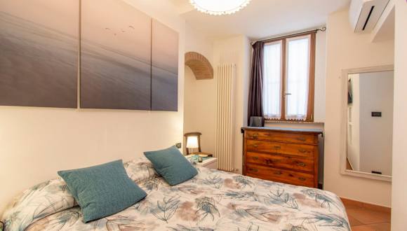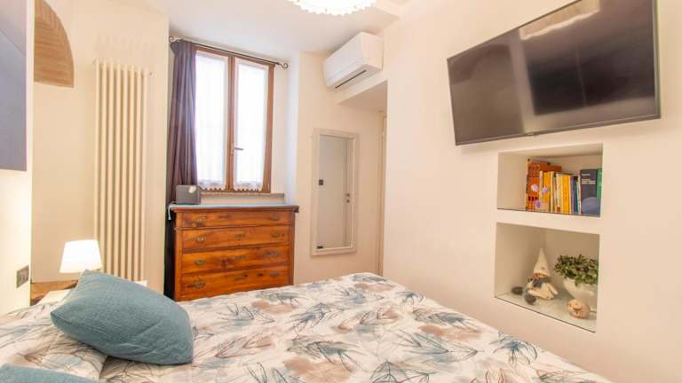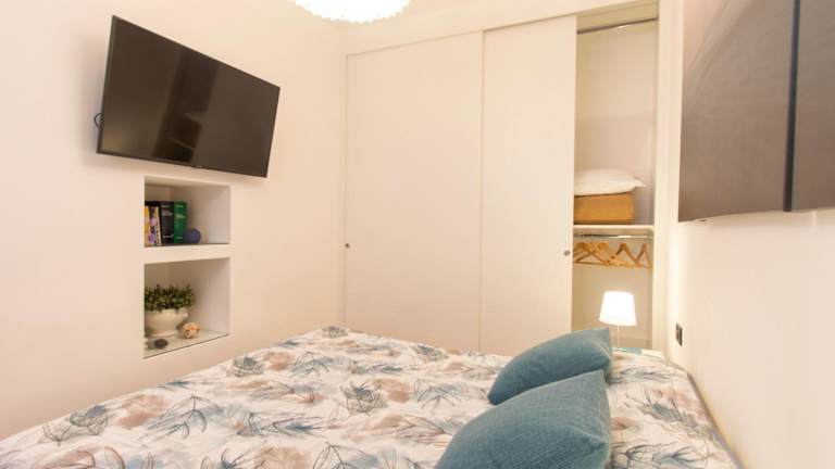 Die Ferienwohnung verfügt über ein Schlafzimmer und ein Badezimmer, das mit Bidet, Dusche und Haartrockner ausgestattet ist. Die Klimaanlage sorgt für ein komfortables Raumklima.