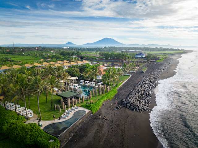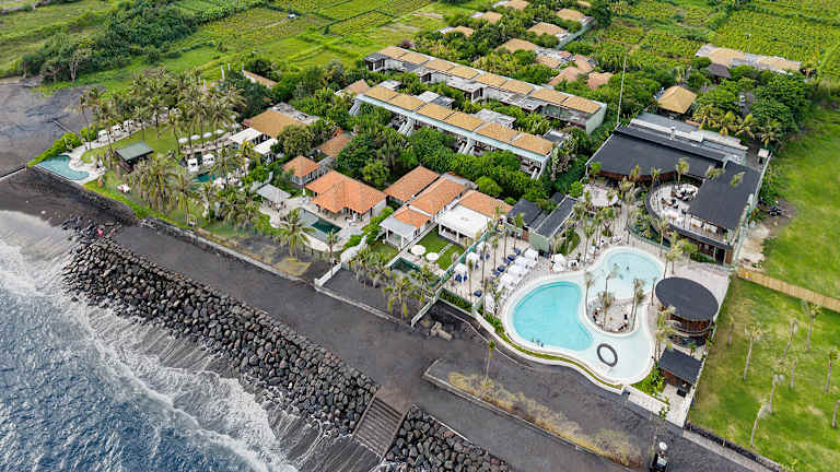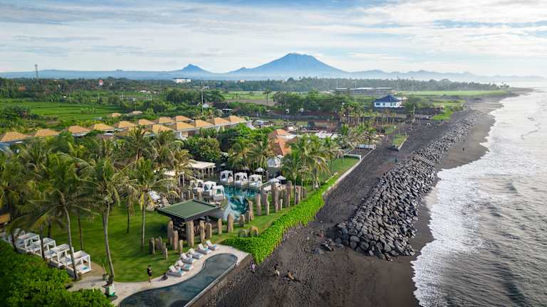 The Royal Purnama ist ein luxuriöses Adults-Only-Strandresort auf Bali, das speziell für Paare und Hochzeitsreisende konzipiert wurde, die Romantik, Privatsphäre und authentischen Inselcharme suchen. Die harmonische Verbindung aus traditioneller balinesischer Architektur und moderner Eleganz spiegelt sich in handgefertigten Möbeln, kuratierten lokalen Kunstwerken und liebevollen kulturellen Details wider, die das reiche Erbe der Insel widerspiegeln. Direkt an einem abgeschiedenen schwarzen Sandstrand gelegen, bietet dieses intime Refugium absolute Ruhe, zeitlose Raffinesse und ein wahrhaft immersives Erlebnis, in dem Tradition und zeitgemäßer Komfort in perfekter Harmonie verschmelzen.