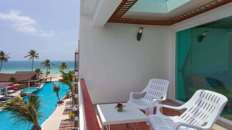 Das The Samui Beach Resort - SHA Plus Certified befindet sich am wunderschönen weißen Sandstrand von Chaweng. Die Lage ist ideal für einen erholsamen Strandurlaub, da Sie nur wenige Schritte vom Strand entfernt sind. In der Nähe des Resorts finden Sie auch die lebhafte Chaweng Walking Street sowie eine Vielzahl von Bars und Restaurants. Das Central Festival Samui, ein beliebtes Einkaufszentrum, ist nur eine kurze Fahrt vom Resort entfernt. Der Flughafen Samui ist ebenfalls leicht erreichbar und liegt etwa 5 km entfernt.