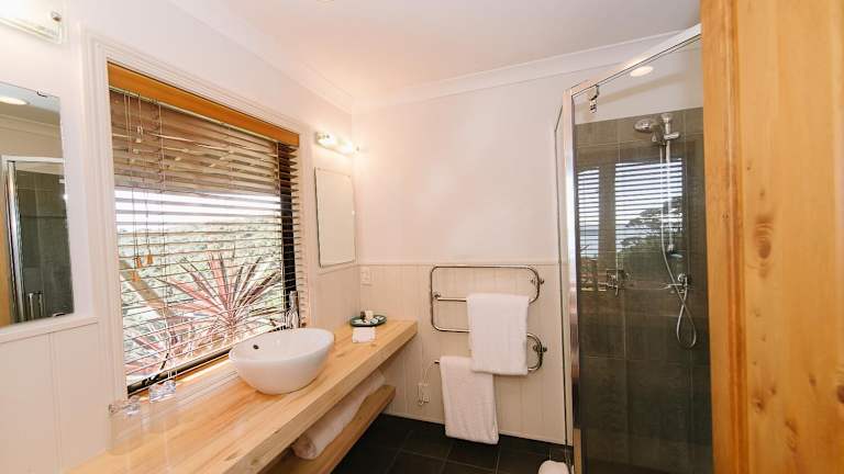 Jede Suite in der Bay of Islands Lodge bietet einen eigenen Balkon mit Blick auf das Meer und die ländliche Umgebung. Die Suiten sind geräumig und komfortabel eingerichtet und verfügen über Annehmlichkeiten wie einen begehbaren Kleiderschrank, einen Schreibtisch und einen Flachbild-TV mit DVD-/CD-Player. Das Badezimmer ist gefliest und verfügt über Fußbodenheizung, Naturpflegeprodukte, einen Haartrockner, Bademäntel und Hausschuhe. Die Lodge verfügt auch über einen offenen Lounge-, Küchen- und Essbereich mit deckenhohen Fenstern, Ledersofas und 2 echten Kaminen, in dem Sie sich entspannen und den Blick auf die Bucht genießen können.