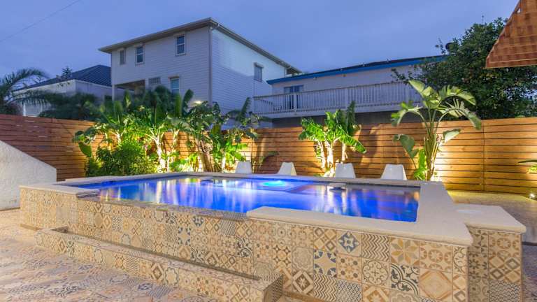 Das The Dolphin House bietet einen Außenpool, in dem Sie sich an heißen Tagen abkühlen können. Der Garten und die Terrasse laden zum Entspannen und Sonnenbaden ein. Für Kinder gibt es einen Spielplatz, auf dem sie sich austoben können. Der nahegelegene Wasserpark Schlitterbahn Beach bietet zusätzliche Unterhaltungsmöglichkeiten für die ganze Familie.
