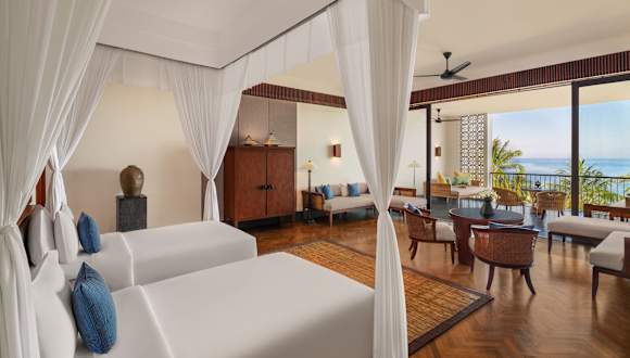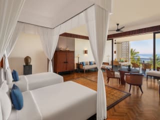 Das Hotel umfasst mehrere Zimmertypen, darunter Suiten und Villen mit Meerblick. Die Zimmer sind Nichtraucherzimmer, ausgestattet mit Klimaanlage, Safe, Wasserkocher und Flachbild-TV. Einige Wohneinheiten verfügen über einen Balkon oder eine Terrasse. Die Zimmer bieten eine Mischung aus modernem Design und Komfort, darunter Sofa, Schreibtisch, Minibar und kostenfreies WLAN.