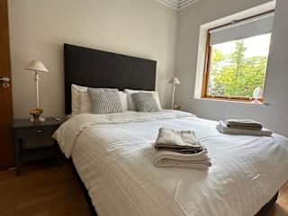 Die Ferienwohnung ist mit einem Schlafzimmer, einer voll ausgestatteten Küche mit Kühlschrank und Ofen sowie einem Badezimmer mit Badewanne, Haartrockner und Waschmaschine ausgestattet. Handtücher und Bettwäsche werden bereitgestellt.