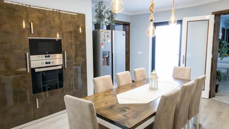 Das Ferienhaus bietet eine voll ausgestattete Küche, in der Sie Ihre eigenen Mahlzeiten zubereiten können. Alternativ können Sie auch in der Nähe des Ferienhauses verschiedene Restaurants und Cafés besuchen, um lokale Spezialitäten zu genießen.