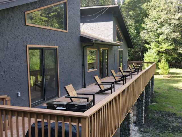 Die Unterkunft befindet sich in Pond Eddy, umgeben von einer großzügigen Landschaft mit einem Garten und einer Terrasse. Der nächstgelegene Flughafen ist der internationale Flughafen Stewart, 82 km entfernt, und das Bethel Woods Center for the Arts liegt 37 km von der Unterkunft entfernt.