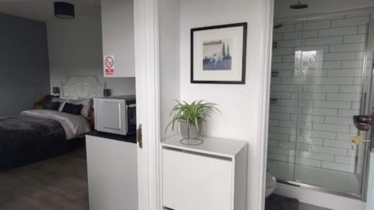 The Studio @ Cleeve Hill bietet eine Ferienwohnung mit einem Schlafzimmer, kostenlosem WLAN, einem Flachbild-TV sowie einer Küchenzeile, die mit einem Kühlschrank und einem Geschirrspüler ausgestattet ist. Die Unterkunft ist von einem Garten umgeben und verfügt über einen kostenlosen Privatparkplatz.