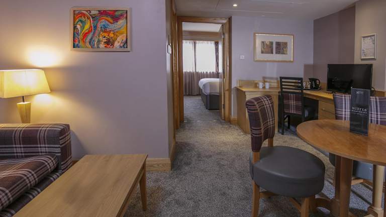 Im The Suites Hotel & Spa Knowsley - Liverpool by Compass Hospitality können Gäste exklusive Suiten genießen, die geräumige Wohn- und Essbereiche bieten. Die Suiten sind mit einem Schreibtisch, einem TV und Tee-/Kaffeekocher ausgestattet und verfügen über ein eigenes Badezimmer mit Badewanne und Dusche. Die Unterkünfte bieten den Gästen den Komfort und die Privatsphäre einer eigenen Wohnung und sind ideal für längere Aufenthalte oder besondere Anlässe.