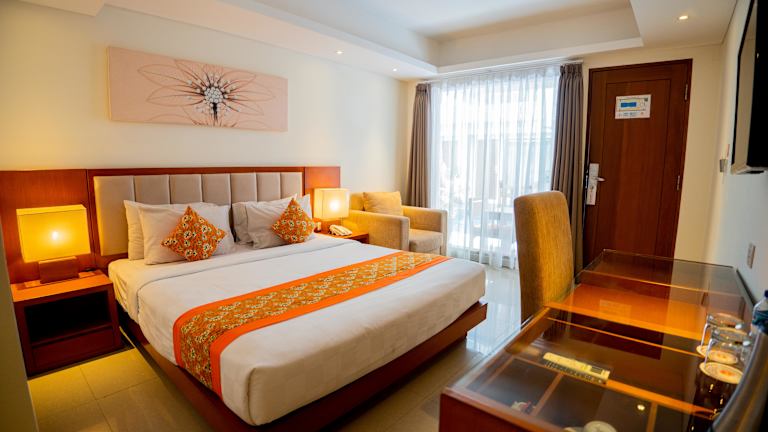 Die klimatisierten Zimmer im The Sun Hotel & Spa Legian bieten einen komfortablen Rückzugsort mit moderner Ausstattung. Jedes Zimmer verfügt über einen Flachbild-Kabel-TV, einen Wasserkocher und einen Safe. Zur weiteren Ausstattung gehören ein Kühlschrank und kostenlose Wasserflaschen. Das Badezimmer ist mit einer Dusche, Handtüchern und kostenlosen Pflegeprodukten ausgestattet.