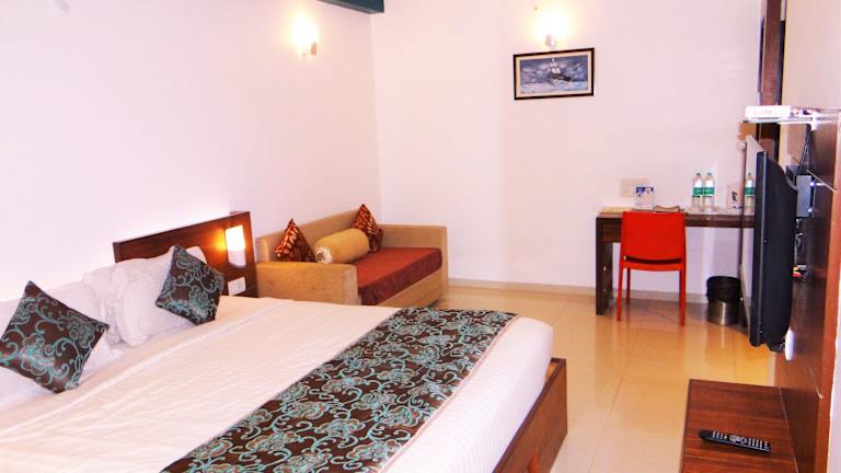 Das Temple View Hotel liegt nur eine Gehminute vom heiligen Saibaba-Tempel entfernt, was es zu einer praktischen Unterkunft für Pilger und Besucher macht. Der Busbahnhof Shirdi ist nur 100 m entfernt, der Bahnhof Sainagar 2 km und der Flughafen Pune 182 km. Der Flughafen Shirdi ist ebenfalls in der Nähe, nur 750 m vom Hotel entfernt. In der Umgebung finden Sie auch andere Sehenswürdigkeiten wie Shani Shingnapur, das 75 km entfernt liegt.