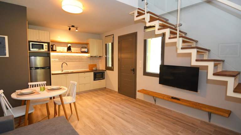Die Wohneinheiten sind mit einer Terrasse ausgestattet, die einen Blick auf die Berge bietet. Jedes Zimmer verfügt über einen Satelliten Flachbild-TV, eine gut ausgestattete Küche mit Kühlschrank, Ofen, Mikrowelle, Kaffeemaschine und Wasserkocher. Zudem sind die Zimmer mit einem eigenen Badezimmer mit Dusche, kostenlosen Pflegeprodukten und Haartrockner ausgestattet.