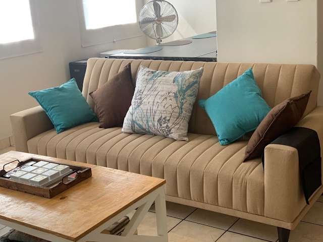 Die Ferienwohnung besteht aus zwei Schlafzimmern und einem Wohnzimmer. Zur Ausstattung gehören eine voll ausgestattete Küche mit Kühlschrank und Kaffeemaschine, zwei Badezimmer mit Dusche und kostenlosen Pflegeprodukten. Handtücher und Bettwäsche werden bereitgestellt, und die Ferienwohnung ist klimatisiert.