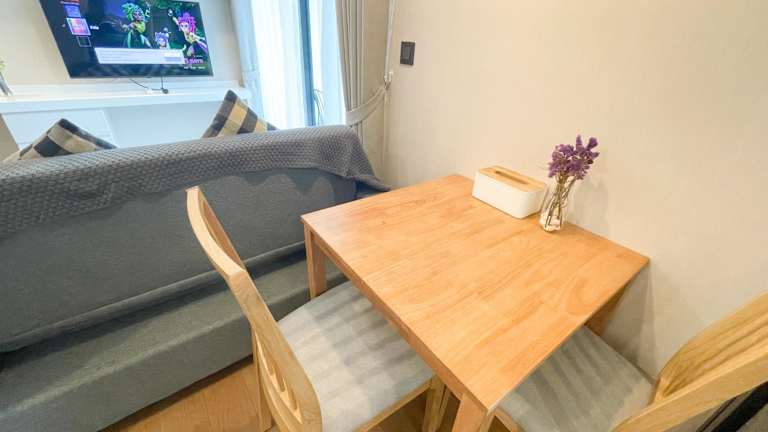 Die Ferienwohnung besteht aus einem Schlafzimmer, einem Wohnzimmer und einer voll ausgestatteten Küche, die mit einem Kühlschrank und einem Wasserkocher ausgestattet ist. Des Weiteren verfügt sie über ein Badezimmer mit Dusche und Haartrockner. Handtücher sowie Bettwäsche werden in der Unterkunft bereitgestellt.