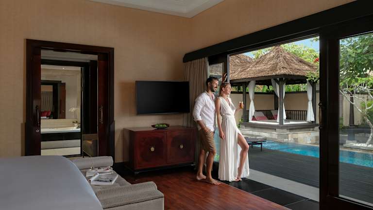 Die Zimmer im The Trans Resort Bali sind modern und elegant eingerichtet und bieten allen Komfort, den Sie sich wünschen. Jedes Zimmer verfügt über eine Klimaanlage, einen Flachbild-Kabel-TV, eine iPod-Dockingstation, einen Safe, eine Minibar und kostenfreies WLAN. Das eigene Badezimmer ist mit einer Badewanne oder Dusche und hochwertigen Pflegeprodukten ausgestattet. Ein Balkon mit Poolblick lädt zum Entspannen ein.