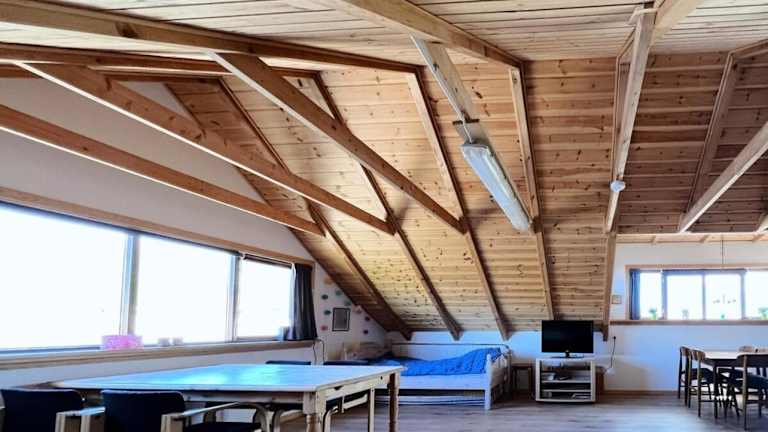 Das Ferienhaus verfügt über ein Wohnzimmer und eine voll ausgestattete Küche mit Kühlschrank und Ofen. Zudem ist ein TV vorhanden.