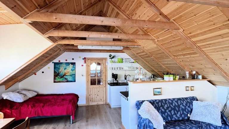 Die Unterkunft befindet sich in Øravík direkt am Strand und bietet einen schönen Blick auf die Umgebung. Der Flughafen Vágar ist etwa 113 Kilometer entfernt.