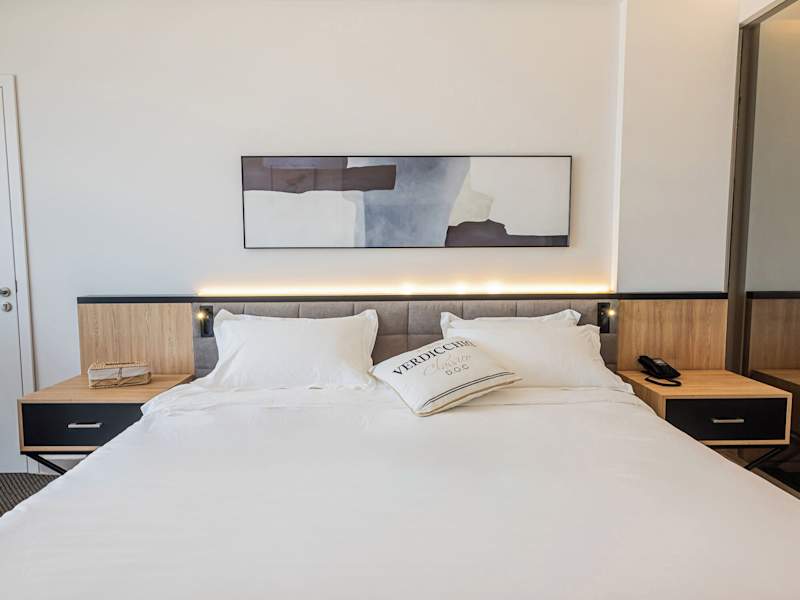 Die klimatisierten Zimmer sind ausgestattet mit einem Schreibtisch, Wasserkocher, Minibar, Safe, Flachbild-TV und einem eigenen Badezimmer mit Bidet. Zu jedem Zimmer gehört ein Kleiderschrank.
