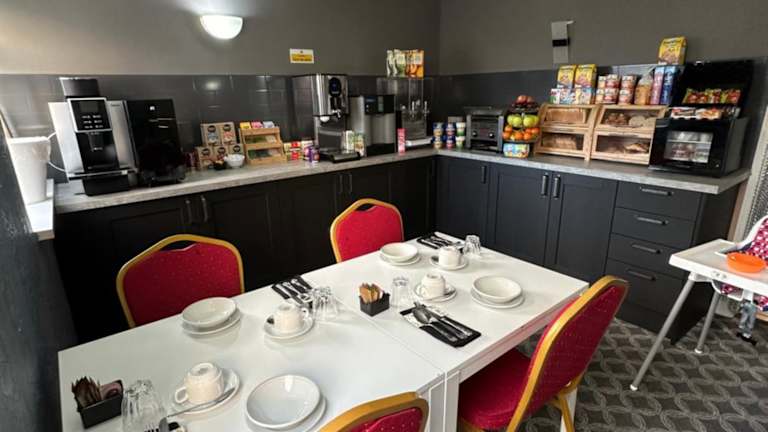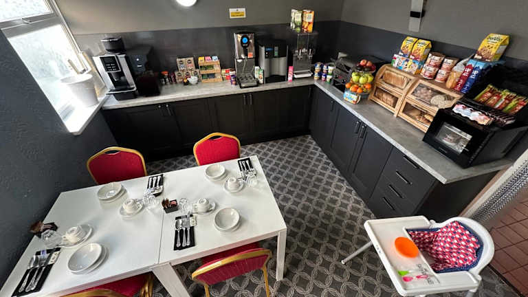 In der Unterkunft wird ein kontinentales, englisches/irisches oder vegetarisches Frühstück angeboten. Es wird darauf geachtet, dass alle Teller, Bestecke, Gläser und anderes Geschirr desinfiziert werden.