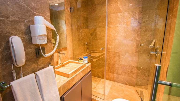 Die Zimmer im Hotel sind mit Klimaanlage und Heizung ausgestattet und bieten ein angenehmes Raumklima. Sie verfügen über ein Doppelbett oder ein Queensize-Bett sowie die Möglichkeit, Zustellbetten zu beantragen. Zur Standardausstattung gehören Minibar, Schreibtisch, Tee-/Kaffeebereiter, Hosenpresse, Telefon, TV-Gerät und kostenloses WLAN. Die Badezimmer sind entweder mit Dusche oder Badewanne ausgestattet, zusätzlich gibt es Haartrockner, Bademäntel und Kosmetikartikel. Das Hotel bietet sowohl Familienzimmer als auch Nichtraucherzimmer an.