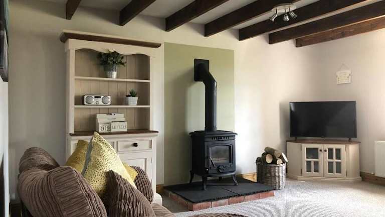 Das Ferienhaus verfügt über ein Schlafzimmer und bietet einen Wohnbereich mit einem Flachbild-TV sowie eine voll ausgestattete Küche. Handtücher und Bettwäsche werden in der Unterkunft bereitgestellt.