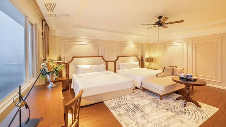 Das River Prince Hotel in Đà Lạt bietet seinen Gästen eine ideale Lage, nur wenige Gehminuten vom Zentralmarkt und dem Xuan-Huong-See entfernt. Die warmen und komfortablen Zimmer mit kostenfreiem WLAN und Stadtblick sorgen für eine angenehme Atmosphäre. Mit zwei Restaurants, einem Tourenschalter und einem freundlichen Personal ist das Hotel ideal für einen entspannten Aufenthalt.