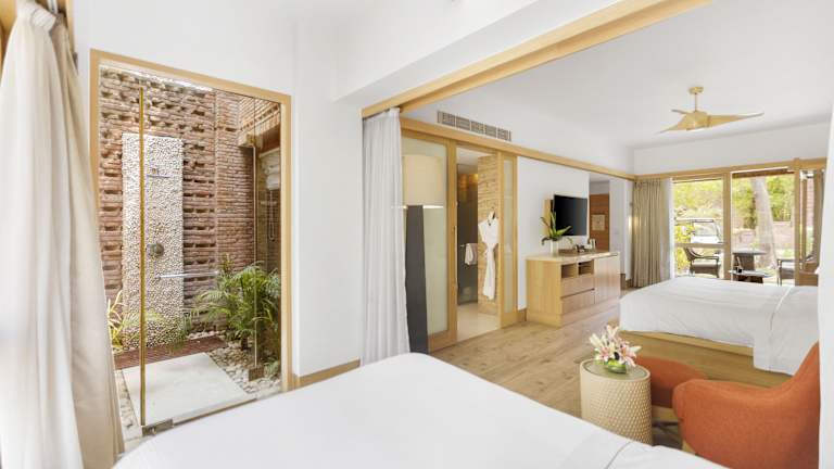 Die eleganten Villen im Westin Sohna Resort & Spa sind von viel Grün umgeben und bieten eine stilvolle und komfortable Unterkunft. Jede Villa verfügt über einen Flachbild-TV, einen DVD-Player und einen separaten Wohnbereich. Die Schlafzimmer sind mit den berühmten Westin Heavenly Beds® ausgestattet, die für einen erholsamen Schlaf sorgen. Die Badezimmer verfügen über eine große Badewanne und eine entspannende Regendusche.