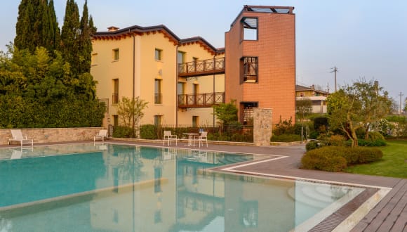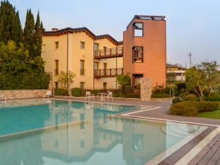 The Ziba Hotel & Spa sieht aus wie perfekte Renovierung eines alten Weinhandlung des XIX Jahrhunderts. Das Kremefarbige Gebäude, das außerhalb der Mauern der historischen Festung von Peschiera del Garda gelegen ist, genießt einen großen privaten Garten und hat einfachen Einlass zu der Hauptstraße zwischen den Städten Verona und Brescia. Der Haupteingang wird von zwei Olivenbäumen und einige Sträucher, die die entspannen Standorten mit Tischen und Sofas umgeben, eingeführt. Ein grünen Garten und Außenpool mit Salzwasser scheinen an der Rückseite. Es ist den perfekten Ort zum Sonnenbaden und ist aus einem Kiosk umgegeben: es bietet Getränke und Snacks für die Gäste während des Sommers an. Während Ihres Aufenthaltes, Sie werden begeistert, diese perfekte Mischung aus Geschichte und Moderne Kunst beobachten zu können: ein altes Deckengewölbe mit beeindruckenden Deckenlampen und die elegante Eingangshalle mit doppelter Glastür können Sie unverzüglich einen Kontakt mit der Welt von The Ziba Hotel & Spa bieten. Auf der linken Seite, ein großartiges Tisch aus Nussbaumholz und Glas mit bequemen Sessel wird Sie bei der Ankunft willkommen und die Mitarbeiter der Rezeption kennenlernen zu können. Auf der rechten Seite, ein komfortabel Salon auf dem schönen venezianischen Fussboden ermöglicht es Ihnen, einen Aperitif an der Bar genießen. Dank seiner Nähe zu den größten Gardavergnügungsparks und seiner Wellnesszentrum, können wir die unterschiedlichen Bedürfnisse von Kindern und Eltern Spaß und Entspannung verbinden. Es eignet sich gleichermaßen für die Veronamesse, angesichts der strategischen Lage in der Nähe der Autobahnausfahrt. Sportliebhaber können in 7 fantastischen Golfplätze spielen oder durch lange Spaziergänge oder Radwege um Sirmione, Borghetto oder Valeggio laufen. Die Aussenparkplätze und die Garage ermöglichen eine leichten Hoteleinfahrt. Das Hotel steht an der Spitze bei der Nutzung der Sonnenenergie und die Biokompatibilität der Materialien, und sowohl akustische und thermische Isolierung. The Ziba Hotel & Spa besteht aus 25 Zimmern von 4 verschiedenen Typologien, die mit einzigartigem und raffiniertem Stil eingerichtet sind. Es ist für eine anspruchsvolle Kundschaft auf der Suche nach hohen Dienstleistungsstandards in einer exklusiven Umgebung konzipiert. Ideal für diejenigen, die einen ruhigen Ort weit vom Chaos der Stadt suchen.