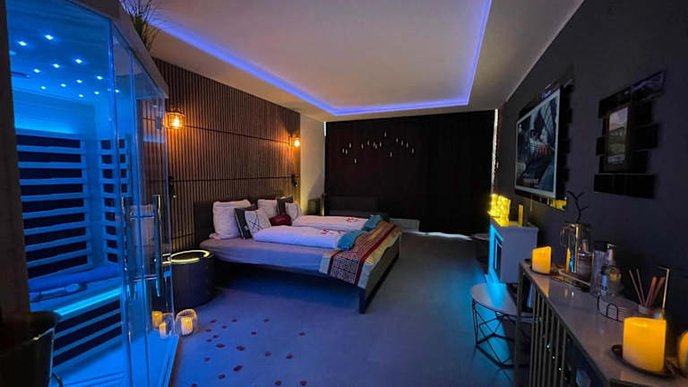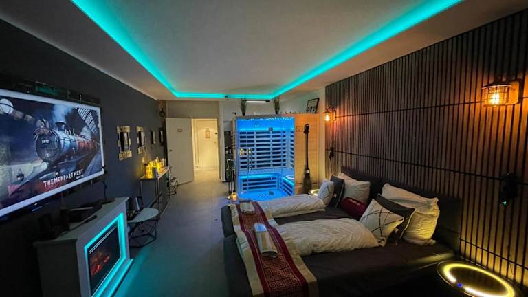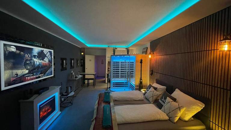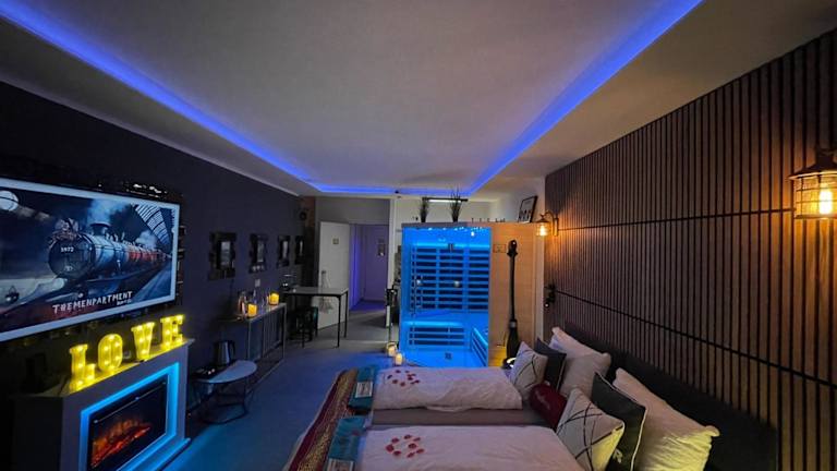 Das Themenpartment privater SPA bietet Übernachtungsmöglichkeiten mit modernen Annehmlichkeiten und einem Balkon. Die Unterkunft ist ausschließlich für Erwachsene ab 18 Jahren zugänglich und wird privat geführt. Feierlichkeiten wie Junggesellenabschiede sind nicht gestattet. Die Unterkunft sorgt für Sicherheit durch Videoüberwachung in den Gemeinschafts- und Außenbereichen und setzt Maßnahmen zur Infektionsprävention um.