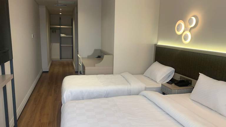 Die klimatisierten Zimmer sind ausgestattet mit einem Kleiderschrank, einem Wasserkocher, einem Safe, einem Flachbild-TV sowie einem eigenen Badezimmer, das eine Dusche bietet. Zudem sind die Zimmer mit Bettwäsche und Handtüchern eingerichtet.