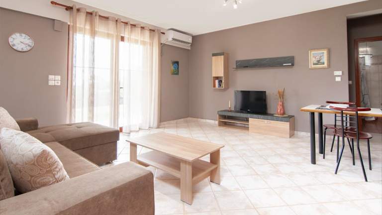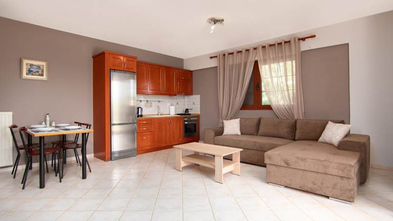 Das Apartment im Ferienhof Theoni bietet Ihnen eine komfortable Unterkunft mit einem Schlafzimmer, einem Wohnzimmer, einer voll ausgestatteten Küche und einem Badezimmer. Von der Terrasse aus haben Sie einen atemberaubenden Blick auf den Garten und das Meer. Das Apartment ist klimatisiert und verfügt über einen Flachbild-TV. Handtücher und Bettwäsche werden gestellt, damit Sie sich wie zu Hause fühlen können. Kostenfreies WLAN und Privatparkplätze stehen Ihnen ebenfalls zur Verfügung.