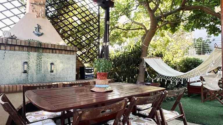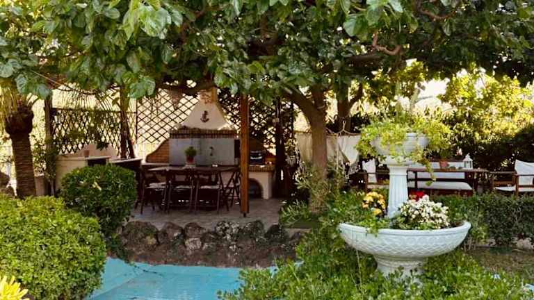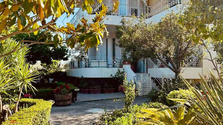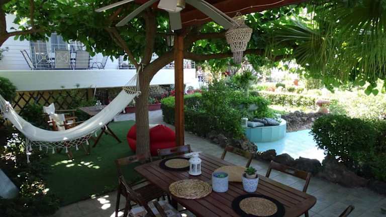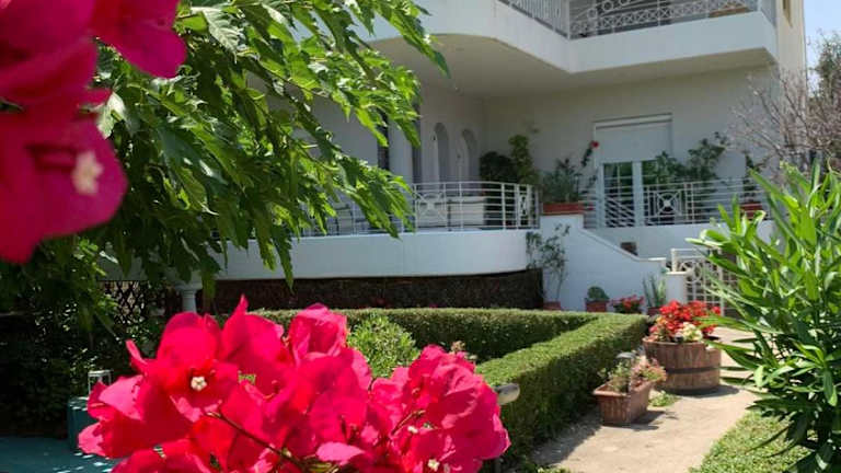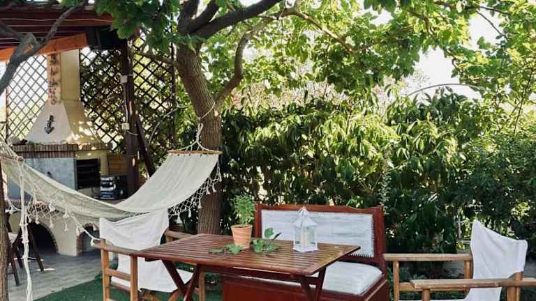 Theros Seaside House - Volos bietet eine Unterkunft mit einem Garten und einer Terrasse. Die Klimatisierung sorgt für eine angenehme Temperatur.